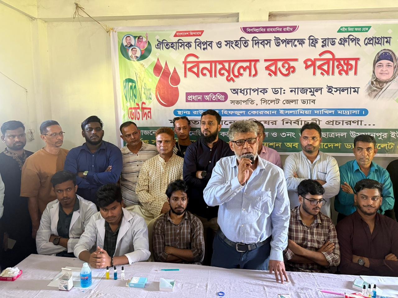 ওসমানীনগরে বিপ্লব ও সংহতি দিবসে ৫০০ মানুষের বিনামূল্যে রক্ত পরীক্ষা