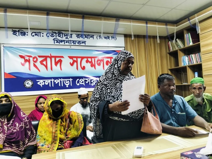 বুধবার (৩ সেপ্টেম্বর) সকাল ১১টায় কলাপাড়া প্রেসক্লাবে এ সংবাদ সম্মেলনে লিখিত বক্তব্য পাঠ করেন উপজেলার মঞ্জুপাড়া গ্রামের জায়েদা বেগম।