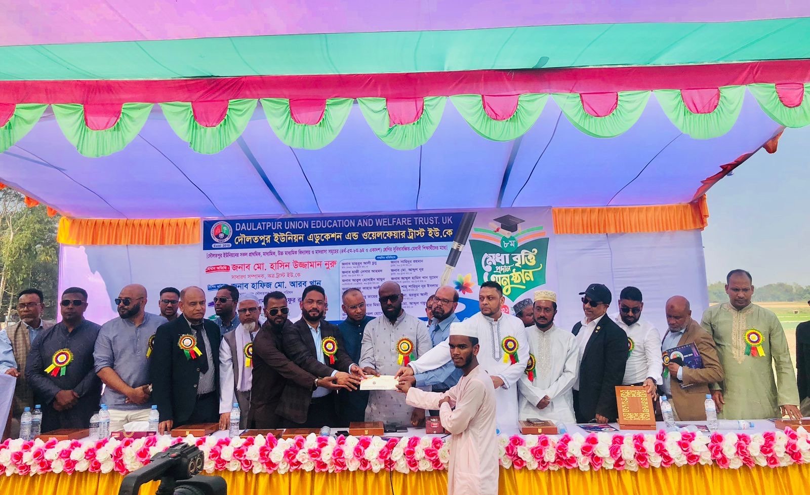 ‘দৌলতপুর ইউনিয়ন এডুকেশন এন্ড ওয়েলফেয়ার ট্রাস্ট ইউকে’র বাংলাদেশ কমিটির সভাপতি মাওলানা লুৎফুর রহমানের সভাপতিত্বে ও দৌলতপুর ইউনিয়ন এডুকেশন এন্ড ওয়েলফেয়ার ট্রাস্ট ইউকের এ্যাসিস্ট্যান্ট ট্রেজারার আব্দুল হামিদ খান সুমেদের পরিচালনায় অনুষ্ঠিত মেধাবৃত্তি বিতরণ অনুষ্ঠানে বিশেষ অতিথির বক্তব্য রাখেন বিশ্বনাথ প্রবাসী এডুকেশন ট্রাস্ট ইউকের ভাইস প্রেসিডেন্ট মিছবাহ উদ্দিন, সেক্রেটারী গুলজার খান, এ্যাসিস্ট্যান্ট সেক্রেটারী আব্দুর রহিম রঞ্জু, এ্যাসিস্ট্যান্ট ট্রেজারার ও দৌলতপুর ইউনিয়ন এডুকেশন এন্ড ওয়েলফেয়ার ট্রাস্ট ইউকের সেক্রেটারী হাসিন উজ্জামান নুরু, যুক্তরাজ্যে গ্রেটার ম্যানজেস্টারে রাজা মনোনীত ল্যাফট্যানেন্ট মোজাহিদ খান, উপজেলার দৌলতপুর ইউনিয়ন পরিষদের চেয়ারম্যান হাফিজ আরব খান, বিশ্বনাথ প্রবাসী এডুকেশন ট্রাস্ট ইউকের প্রেস এন্ড পাবলিসিটি সেক্রেটারী শরিফুল ইসলাম, ইসি মেম্বার ও দৌলতপুর ইউনিয়ন এডুকেশন এন্ড ওয়েলফেয়ার ট্রাস্ট ইউকের এ্যাসিস্ট্যান্ট সেক্রেটারী আবুল হোসেন মামুন, বিশ্বনাথ প্রবাসী এডুকেশন ট্রাস্ট ইউকের ট্রাস্টি বাবরুল হোসেন বাবুল, আজিজুর রহমান খান রাজু, দৌলতপুর ইউনিয়ন এডুকেশন এন্ড ওয়েলফেয়ার ট্রাস্ট ইউকের প্রতিষ্ঠাতা ট্রেজারার ও ট্রাস্টি মাহবুব আলী চুনু, ইসি মেম্বার শাহ শাহিদুন নূর ইসলাম, ট্রাস্টি হাজী নেছার আহমদ, আব্দুন নূর, আবুল কাহার আলী, আনহার মিয়া।