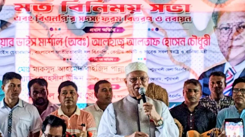 বাংলাদেশ জাতীয়তাবাদী দল বিএনপি’র কেন্দ্রীয় কমিটির ভাইস চেয়ারম্যান ও সাবেক স্বরাষ্ট্রমন্ত্রী এয়ার ভাইস মার্শাল (অব.) আলহাজ্ব আলতাফ হোসেন চৌধুরী বলেছেন, পটুয়াখালীতে বিএনপি নেতাদের লেনদেনের মাধ্যমে আওয়ামী লীগের নেতাকর্মীরা দিব্যি বুক ফুলিয়ে ঘুরে বেড়াচ্ছে। বাংলাদেশের সব জেলার ফ্যাসিস্ট নেতাকর্মীরা পালিয়েছে, শুধু পটুয়াখালীর নেতাকর্মীরা ছাড়া। এখানকার কিছু নেতা বিএনপির ফরম আওয়ামী লীগ নেতাদের কাছে টাকার বিনিময়ে বিক্রি করছে এবং তাদের সদস্য বানাচ্ছে। মানে বিএনপির নেতারা ব্যবসার উপর ব্যবসা করছে।