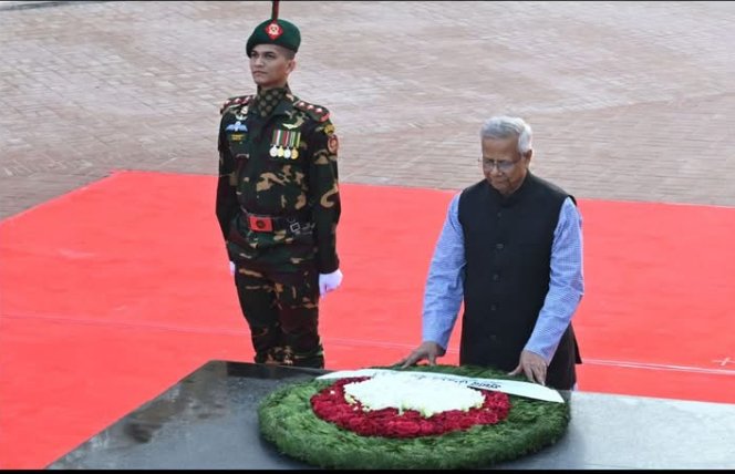 প্রধান উপদেষ্টা মুহাম্মদ ইউনূস সকাল ৭টা ২২ মিনিটে শ্রদ্ধা নিবেদন করেন।