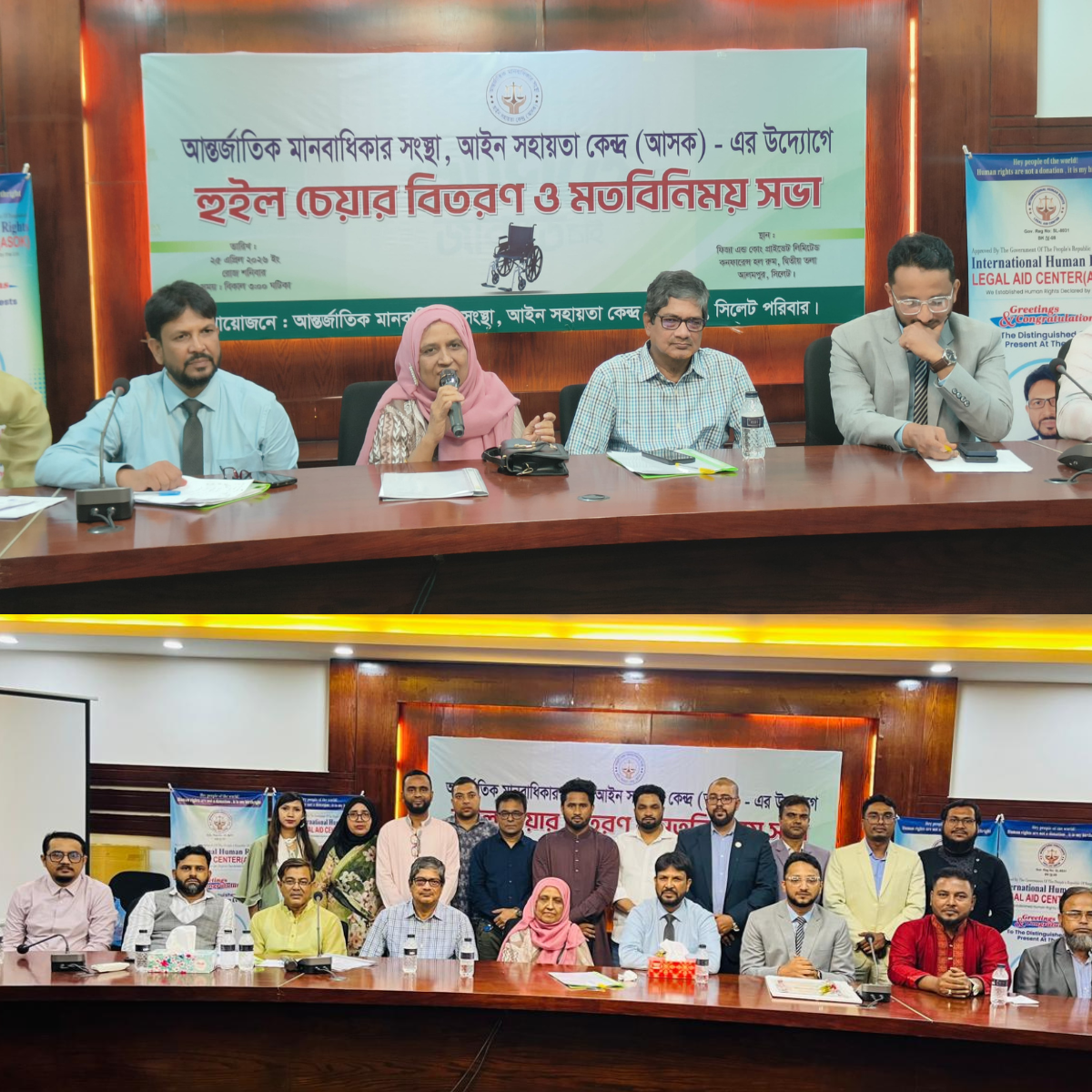 আন্তর্জাতিক মানবাধিকার সংস্থা আইন সহায়তা কেন্দ্র (আসক), সিলেটের উদ্যোগে মানবতার সেবায় ব্যতিক্রমধর্মী আয়োজন হিসেবে চলাচলে অক্ষম ব্যক্তিদের মাঝে হুইলচেয়ার বিতরণ, দুই দম্পতিকে বিবাহোত্তর সংবর্ধনা এবং এক মতবিনিময় সভা অনুষ্ঠিত হয়েছে।