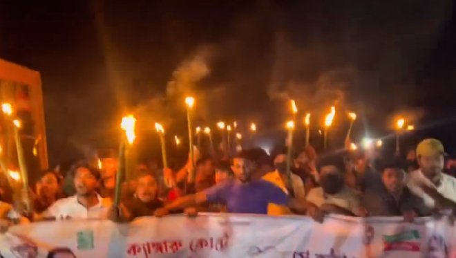 ছড়িয়ে পড়া ভিডিওচিত্রে দেখা যায়, মিছিলে শতাধিক নেতা–কর্মী অংশ নেন। তাঁদের হাতে ছিল জ্বলন্ত মশাল। এ সময় তাঁরা ‘জয় বাংলা, জয় বঙ্গবন্ধু’, ‘শেখ হাসিনা সরকার বারবার দরকার’, ‘শেখ হাসিনা ভয় নাই, রাজপথ ছাড়ি নাই’, ‘মানি না মানবো না অবৈধ সরকার’, ‘রাজপথ কাঁপবে, শেখ হাসিনা আসবে’—এমন বিভিন্ন স্লোগান দিতে শোনা যায়।