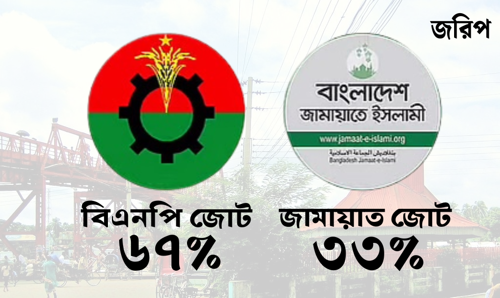 সিলেটে বিএনপি জোটের জয়ের সম্ভাবনা ৬৭%, জামায়াত জোট ৩৩% — জরিপFebruary 10, 2026