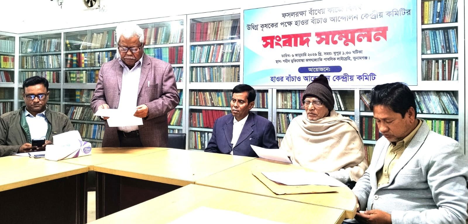 মঙ্গলবার (০৬/০১/২৬) দুপুরে উদ্বিগ্ন কৃষকদের স্বার্থে হাওর বাঁচাও আন্দোলন কেন্দ্রীয় কমিটির উদ্যোগে সুনামগঞ্জ শহরের শহীদ জগৎজ্যোতি পাঠাগার মিলনায়তনে এই সংবাদ সম্মেলন অনুষ্ঠিত হয়। এতে বিভিন্ন প্রিন্ট ও ইলেক্ট্রনিক্র মিডিয়ার সংবাদকর্মীরা উপস্থিত ছিলেন।
